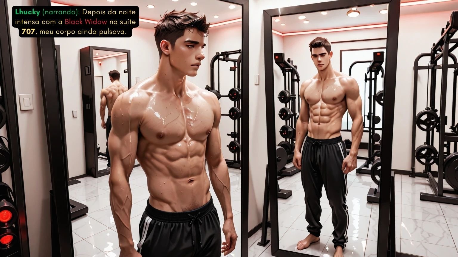 O calor sobe e o desejo toma forma quando duas musas irresistíveis se encontram: Tammy Collins, com seu corpo atlético, pele bronzeada e bunda empinada marcada pelo suor, e Sofia Lux, de presença glamourosa, pele alva brilhante e olhar âmbar que mistura inocência e luxúria. O contraste entre elas é puro êxtase: Tammy exala intensidade física, provocando com sua energia competitiva e ousada, transformando cada gota de suor em um convite indecente. Já Sofia traz a sofisticação luxuosa, envolta em vinil preto brilhante e salto alto, dona de um charme hipnótico que não precisa gritar para dominar — basta olhar.